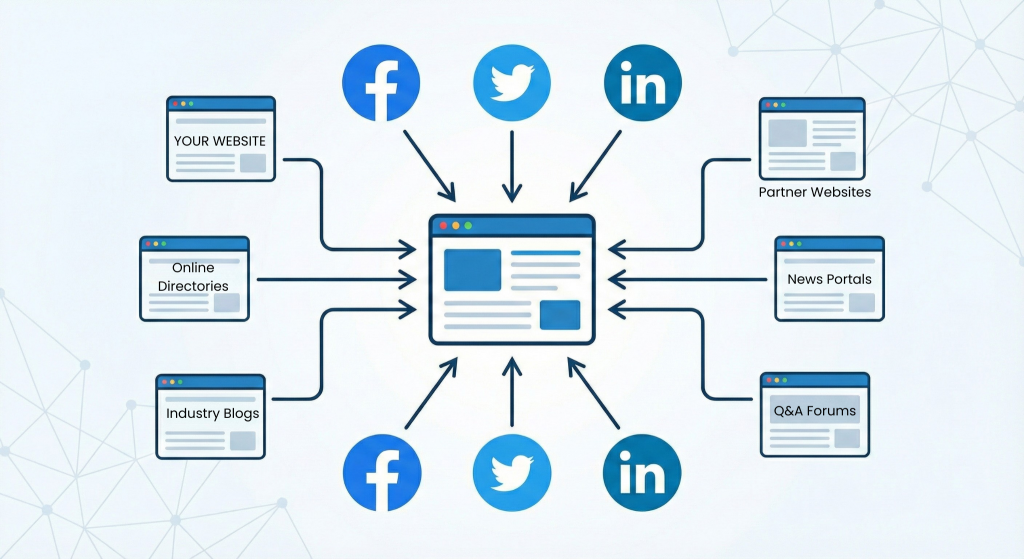 Your website’s reputation is built outside of your website. Off-Page SEO tells Google that other reputable sources trust you. This is the primary driver of Domain Authority (DA) and is essential for competitive rankings.